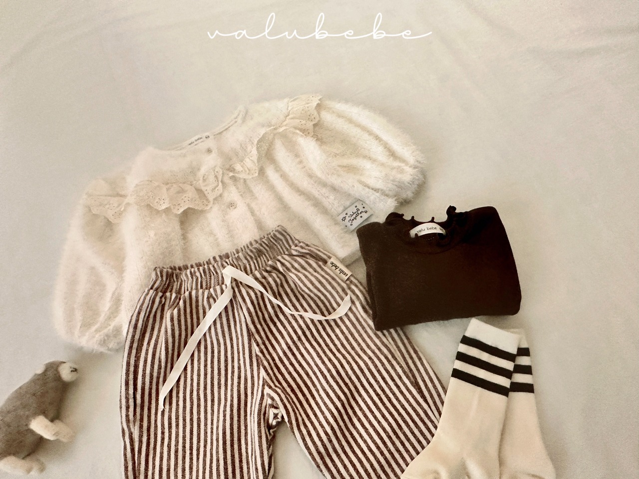 ただし韓国と日本では検品基準が異なり、縫製があらい部分(ボタン付けの甘さ、糸の始末が不十分、縫製のずれ、タグの欠陥、プリントのずれ等)があり、また事前告知なく再生産の過程で生地が変更となる場合もございます。