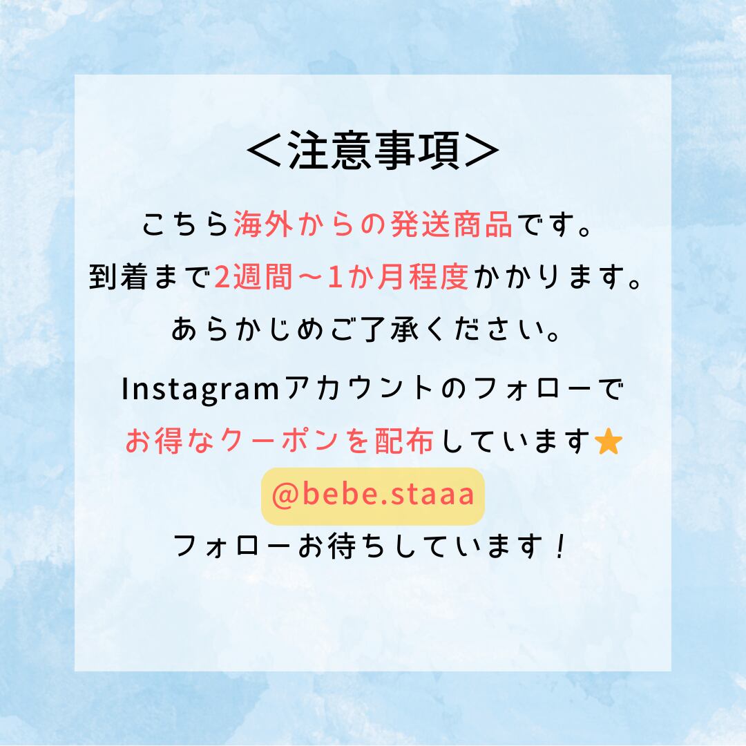 ・韓国と日本では検品基準が異なるため、縫製の粗さ(ボタン付けの甘さ、糸始末の不十分さ、縫製のずれ、タグの不備、プリント位置のずれ等)が見られる場合がございます。 ・生産工程上、事前の告知なく生地や仕様が変更となる場合がございます。 ・サイズ表記には、若干の個体差・誤差が生じる場合がございます。 ・当店では明らかな不良品を除いて検品を行っておりますが、縫製の個体差、ボタンの緩み、小さなインク飛び等は良品扱いとさせていただいております。 ・ご購入後のキャンセル・返品・交換は原則お受けできません。 ・商品のご購入から発送まで、最大で約2か月程度お時間をいただく場合がございます。 ・分納をご希望の場合は、ご購入時または事前にご連絡ください。