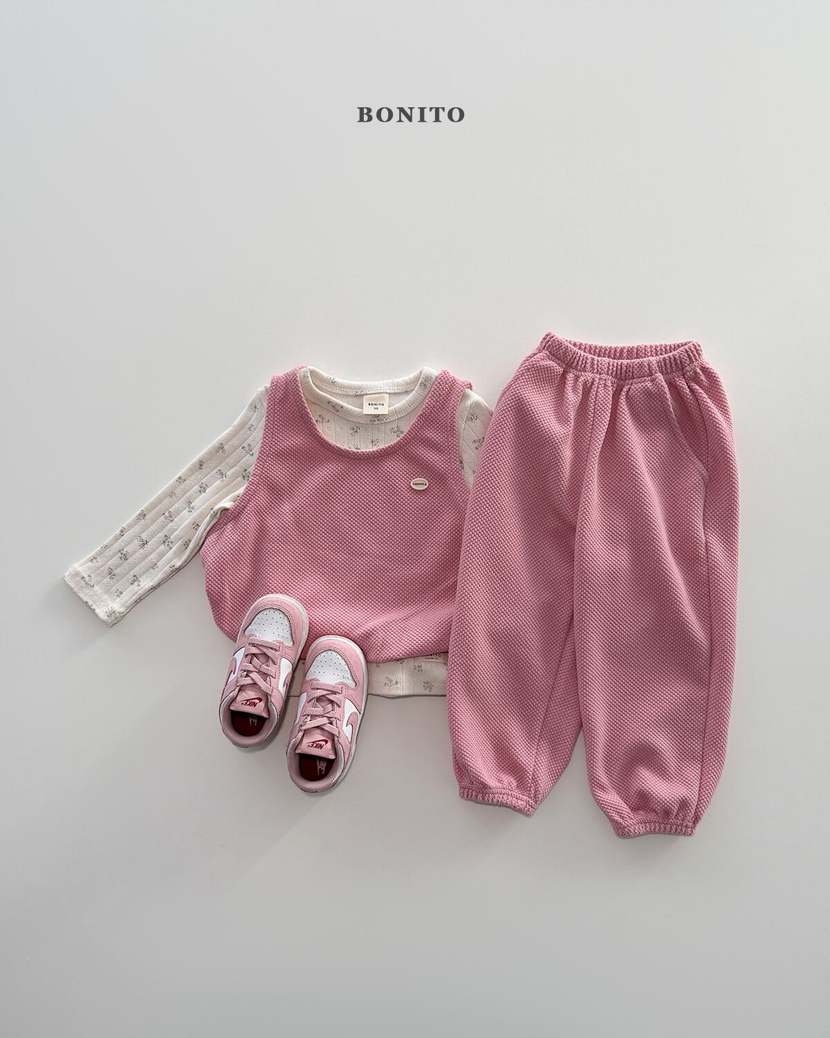 繊細なパンチングディテールが、着るだけでやわらかく可憐なムードを演出します。伸縮性に優れた素材で、動きの多いお子さまでも快適に着用いただけます。