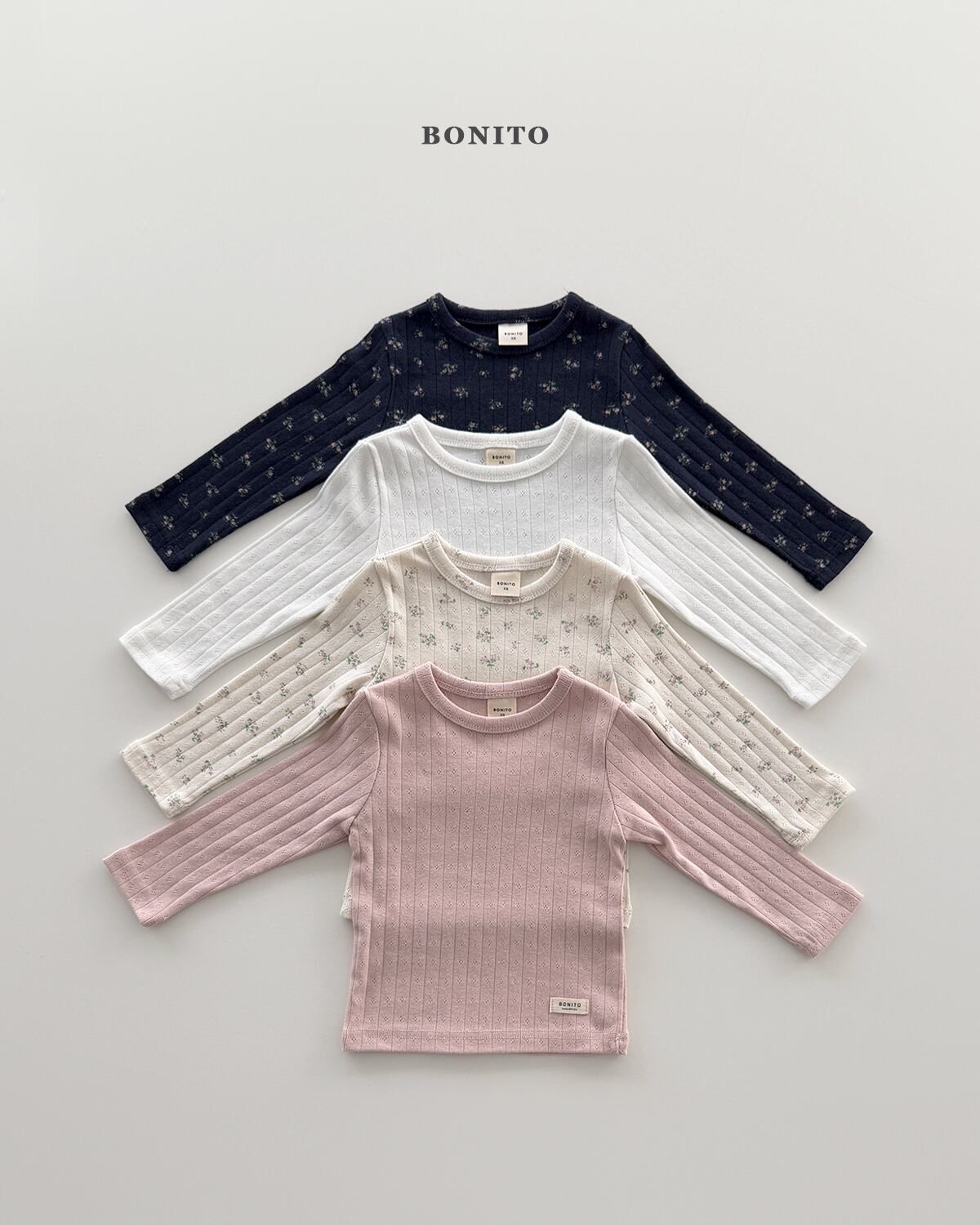 1枚での着用はもちろん、ワンピースやサロペットとのレイヤードスタイルにもおすすめ。ベーシックカラーからフラワーパターンまで豊富に揃い、選ぶ楽しさも広がります。