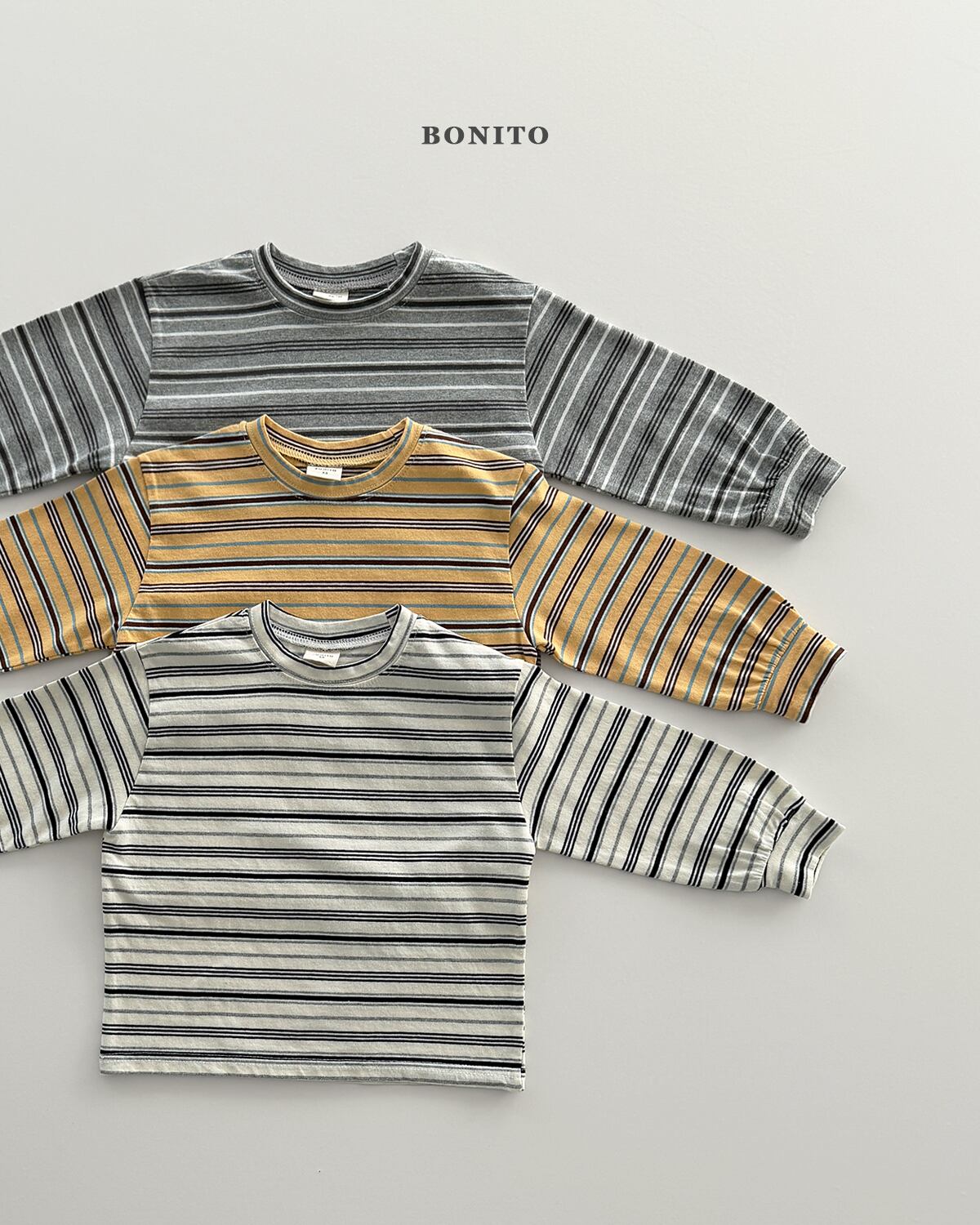 さりげないストライプ柄に、ネック・袖口・裾のリブ仕上げを施し、MTMのように快適な着心地を実現。やわらかなコットン素材で、1枚ではもちろんインナーとしても活躍します。