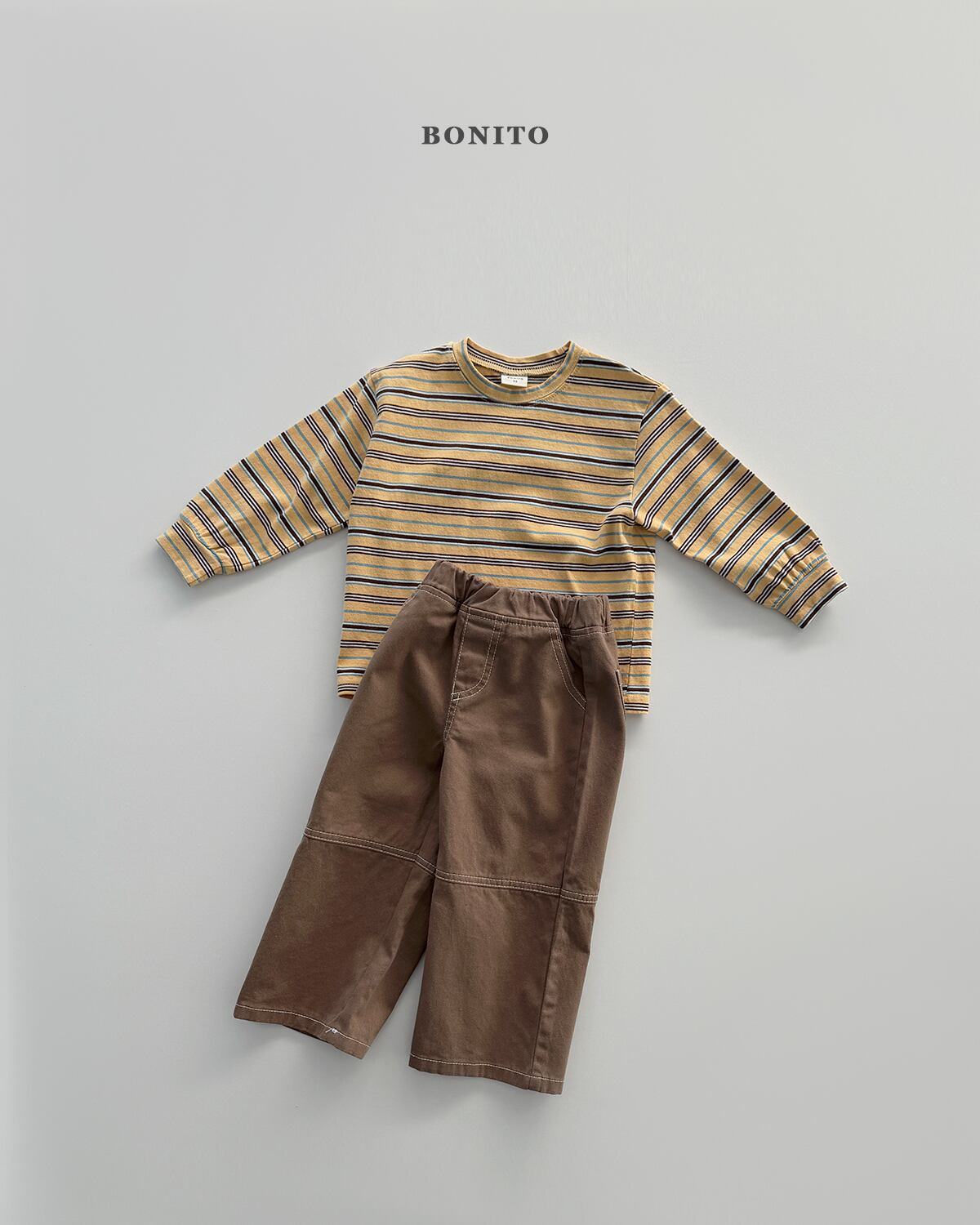 落ち着いたカラー展開でさまざまなアイテムと合わせやすく、コーディネートのさりげないアクセントになるストライプTシャツです。
