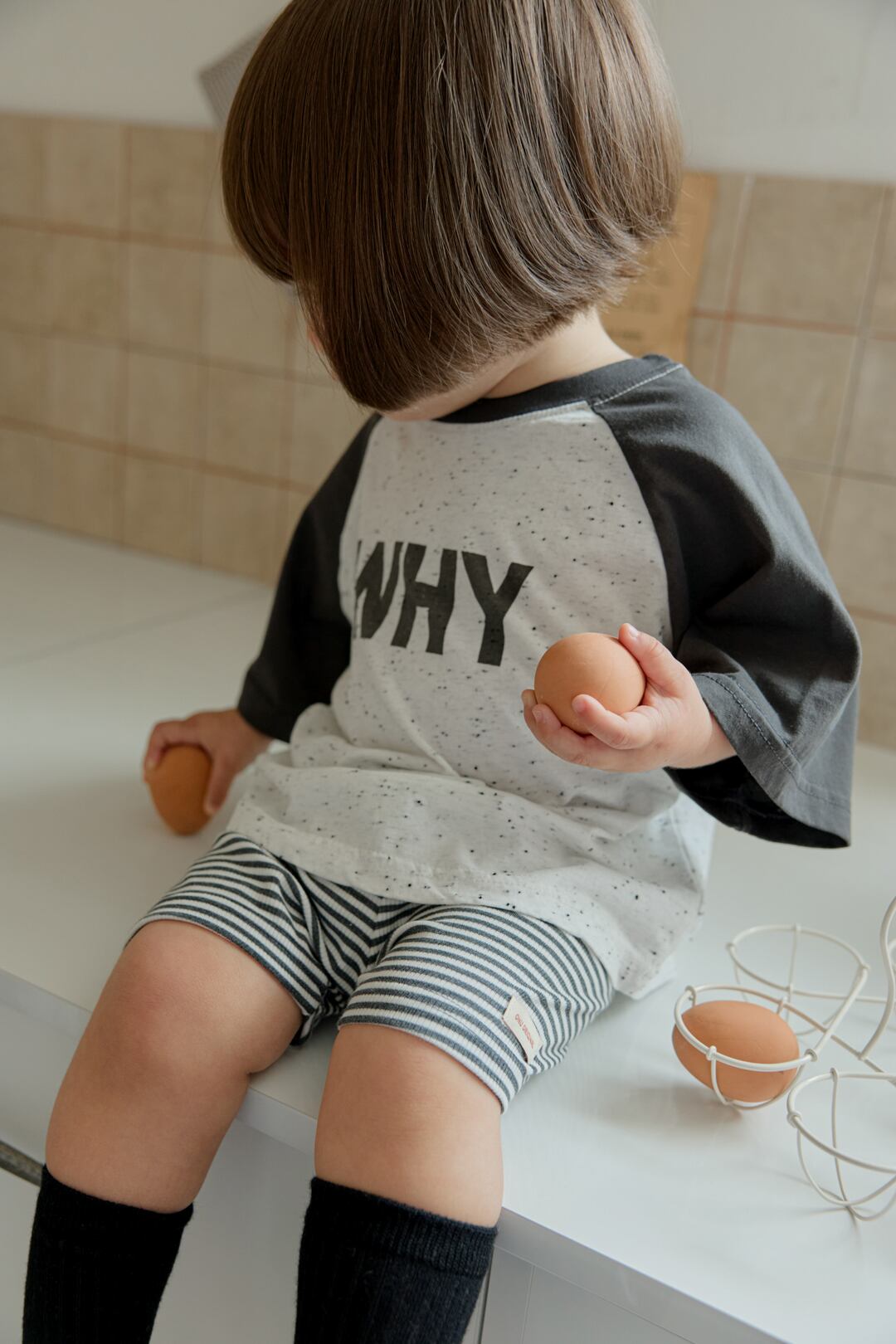 ただし韓国と日本では検品基準が異なり、縫製があらい部分(ボタン付けの甘さ、糸の始末が不十分、縫製のずれ、タグの欠陥、プリントのずれ等)があり、また事前告知なく再生産の過程で生地が変更となる場合もございます。