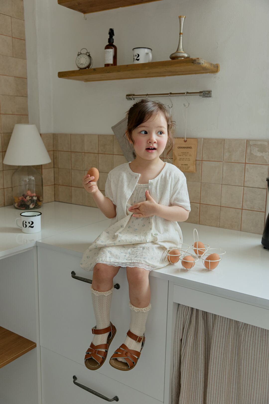 ただし韓国と日本では検品基準が異なり、縫製があらい部分(ボタン付けの甘さ、糸の始末が不十分、縫製のずれ、タグの欠陥、プリントのずれ等)があり、また事前告知なく再生産の過程で生地が変更となる場合もございます。
