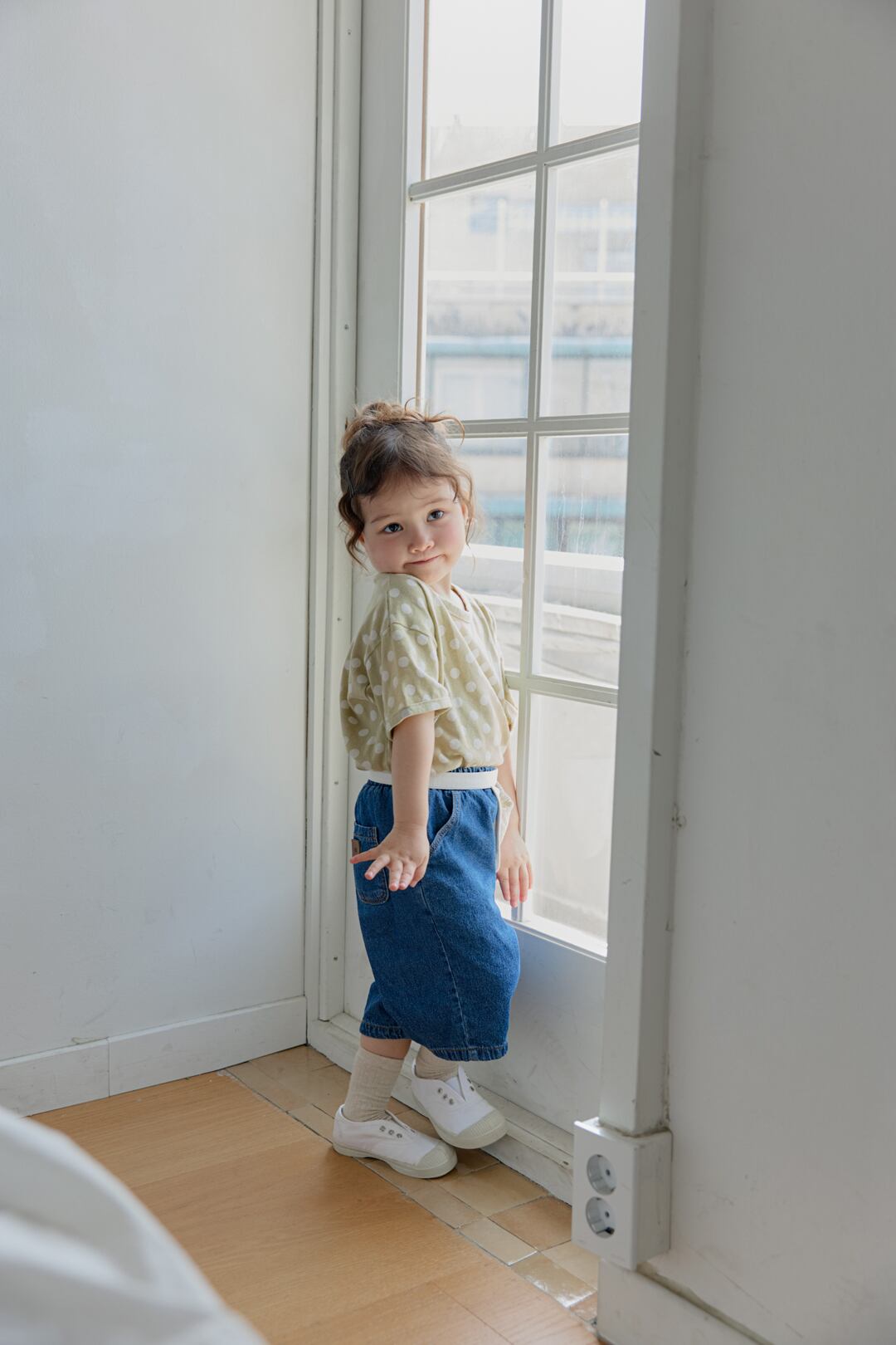 5〜6分丈で仕立てたデニムパンツです。