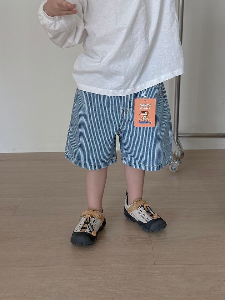 しっかりとしたデニム素材に、ストライプ柄が映えるデニムショートパンツです。